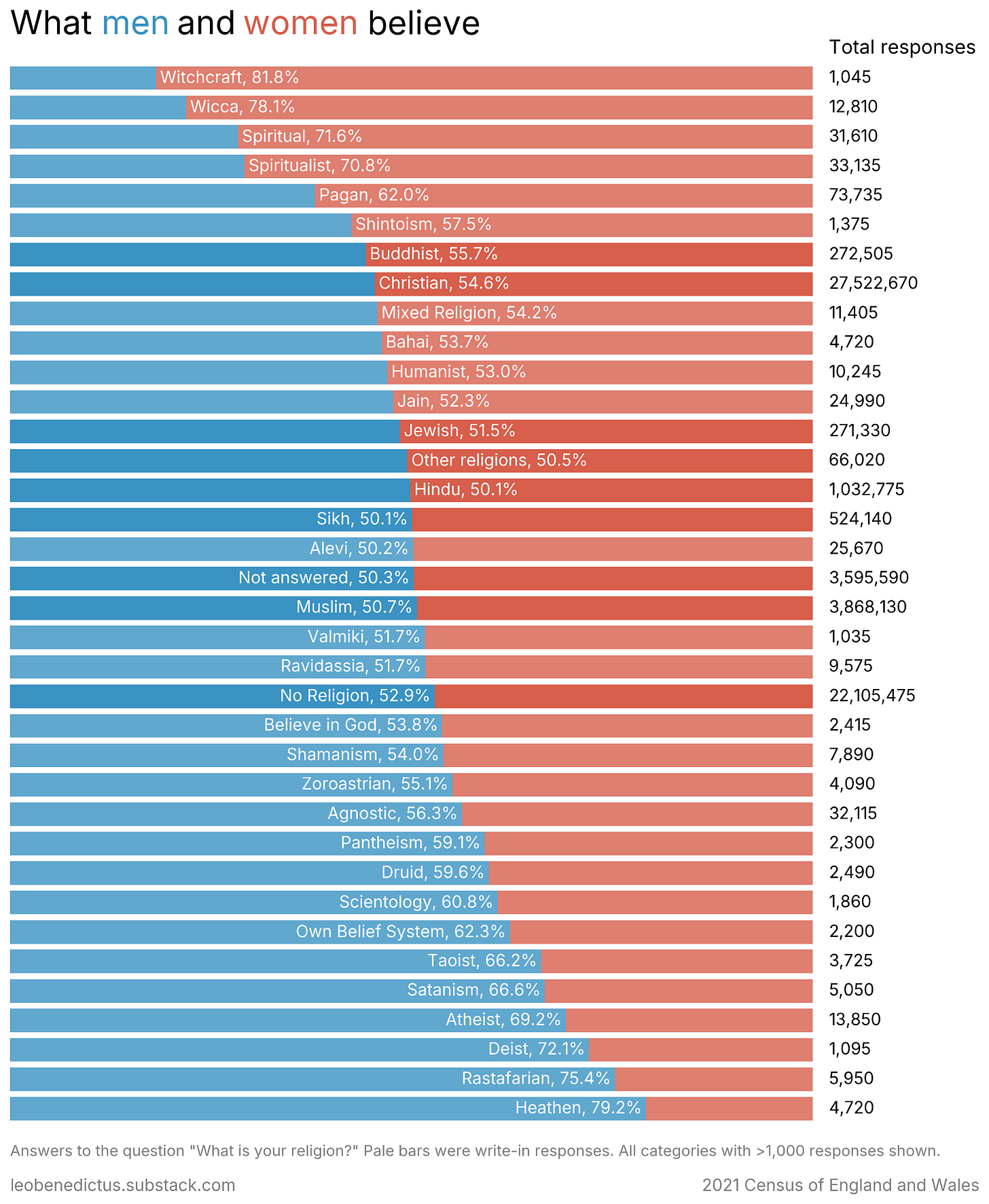 Satanism being at 66.6% male in that graphic feels like it has to be a joke!